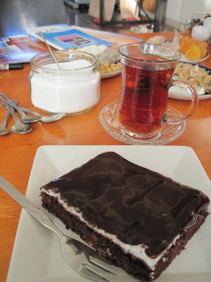 1c5fcebe.jpeg83546a97.jpegacafc8c8.jpegab515d7b.jpeg3fc601c2.jpeg41e281db.jpegc0b15d7c.jpeg798cd995.jpeg185b4a39.jpeg4d096d57.jpegb99a98f7.jpegゼヘラさん宅でトルコ料理のレッスン。この日は伝統料理のマントゥ、ピラフ、スパイシーチキン、アーラヤンケーキ(チョコレートケーキ)のレクチャー。どれもと~っても美味しい♪スパイスもたっぷり使うけど全然油っぽくないし、ヨーグルトも使うからさっぱりしている。トルコ料理は日本人の口合うと思うな。(アラビア料理に近いのかと思っていたけど別物だった…)レクチャーを受けて「えーっ!ホントに?!」と衝撃を受けて叫んだのは「マントゥ」と「アーラヤンケーキ」の作り方。マントゥは「大きなテーブルで特別な時に皆で集まって大量に作るのよ」とゼヘラさんが言った意味が作ってみて初めて納得。こりゃ一人じゃ絶対無理!親指位の小さいラビオリ?餃子?のような物を分業で作っていくのだから。これ時間かかりましたよ~。そしてアーラヤンケーキは牛乳を焼き上げた熱々の生地に直接ドボドボ流し込んでしっとりさせるという驚きの作り方。「泣く」という意味のとうりチョコレートも流れ落ちるくらいふんだんにたっぷりと。甘そうな見かけと裏腹に凄くあっさりしているのでこれまたびっくり!でチャイにも会うんだな。どれもこれも美味しくて感動。家で早速作ってみよっと。お土産も沢山、ありがとうね♪