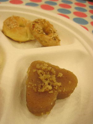 東京ジャーミーでのお茶会で、トルコ人のステキな先生が教えてくれたトルコ菓子「ヘルワ」の作り方。ヘルワ(可愛い・美しいという意味だそう)と呼ばれるそのお菓子は唯ひたすらに「混ぜるだけ」という至ってシンプルなもの。先生は「誰でも出来るわ。簡単よ」と言ってたけど、いやいや違うっ!シンプルだからこそ凄ーく難易度が高いお菓子とお見受けした。下手するとダマになるからなぁ。ホワイトソース作る感じに似てるかも。火加減と混ぜ具合、これが重要。素朴なお菓子だけどホッとする味。スイートポテトのような芋羊羹のような…。トルコでは大皿に作って切り分けて食べるのが一般的だそう。でもパーティーではこんな風に型抜きしても。可愛さ倍増~!この味再現出来るかなぁ。