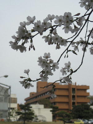 都内から少し遅れてここらの桜もやっと見頃を迎える。職場の桜並木もご覧の様な美しさ。あ~やっぱり良いわ~見事だわっ!研究所内を縦に横にとずーっと続くこの桜並木はちょっとした名所。昼夜を問わず近くのスーパーに車を止めてカメラ片手に散歩する人も多いのであります。昔むか~し七輪持ち込んで焼肉した人がボヤ騒ぎを起こして以来警備員が巡回するようになり、一般人は歩道を歩いて見物するようになったみたい。当然よね~家宅侵入罪!ですものね…ここの夜桜もそれはそれは美しいのでありますよ。気持ちは分からなくもないけどね。さて我々職場のお花見でありますが、4月8日の設定となっておりました。既に散ってるーっ!葉桜の可能性大。…という訳で今日昼休みに居る人だけで一足早くお花見しちゃいました♪ムフフッ